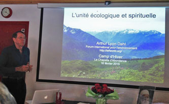 December 2022. This was a relatively quiet month with my usual activities for the International Environment Forum, the pleasure of creating new children's class materials on Bahá'í geography, and time at my chalet in the forest. I drafted a chapter on UNEP work on oceans for a book of civil society perspectives. On 8-9 December I joined a meeting in Geneva on Earth Trusteeship. We had a lunch on 16 December of all the Bahá'ís involved in international organizations in Geneva. Two Bahá'í friends important in my life passed on: Mahchid Fatio from Nyon, Switzerland, for whom I had given many fireside talks in past years, and Jean Sevin, a long-time friend in New Caledonia, a reminder that many of my generation are reaching the end of their days on earth. The month ended on a high note at the Swiss Bahá'í Winter School in Leysin in the Alps, where 360 participants including 40 children and as many junior youth gathered for joy and classes in French, German, English, Persian, Arabic and Russian (for the Ukrainians), including my Geneva grandchildren and other family members.