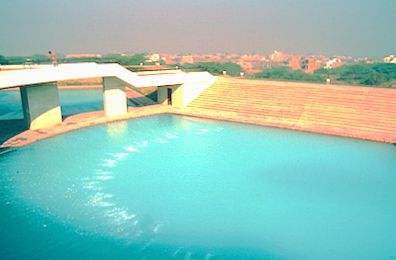 Dedication of the New Delhi House of Worship in December 1968, with Ruhiyyih Khanum (from International Audiovisual Centre slide programme). Often called the "Lotus Temple", it attracts more visitors than the Taj Mahal.