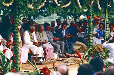 The Malietoa and Ruhiyyih Khanum; Malietoa speaking at the dedication