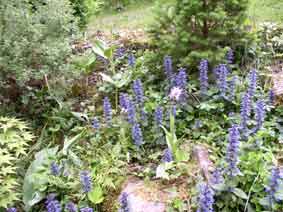 Ajuga reptans The garden plantings also bring colour after the long grey-green winter. Ajuga is common Tulips