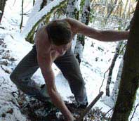 Building trails through the woods has been one of my favorite activities since I was 14 years old and built trails through the forest where I lived in California. The steep slopes on my property make this particularly challenging. In the winter snow, the trails get slippery and I have to clear them if I need to carry firewood. Clearing and repairing one of my forest trails For kindling, I cut up branches and small trees with large shears. This way I get warm twice, once in cutting the wood, and again in burning it.