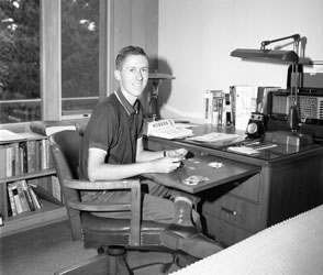 Roger, me and Nancy Robison, last days in Palo Alto; Mother and Greg at my desk, Palo Alto, April 1955 before the rest of the family moved to Pebble Beach
