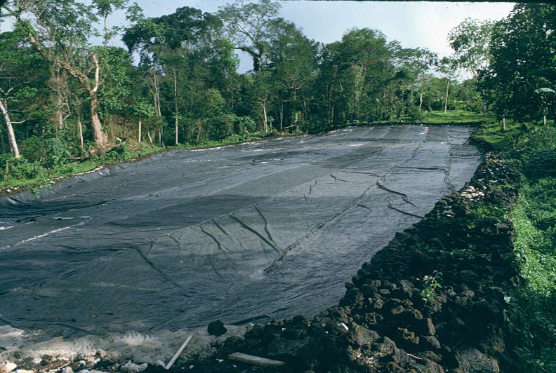 Recent volcanic islands made largely of lava flows and volcanic ash are too porous to retain much ground water. To collect water for a forestry nursery in Samoa, a plastic catchment was necessary.
