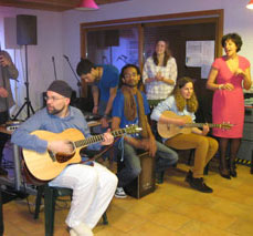 The music workshop (right, male half only) sang two songs of its own composition, a musical meditation, and a song from Lemon Soul