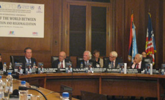 Dr. Erhard Busek (centre left); speakers; some of the audience