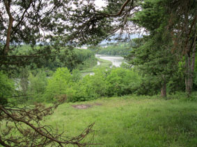 Beyond the forest is a grassy slope and then the forest that grows on the banks of the Rhone River